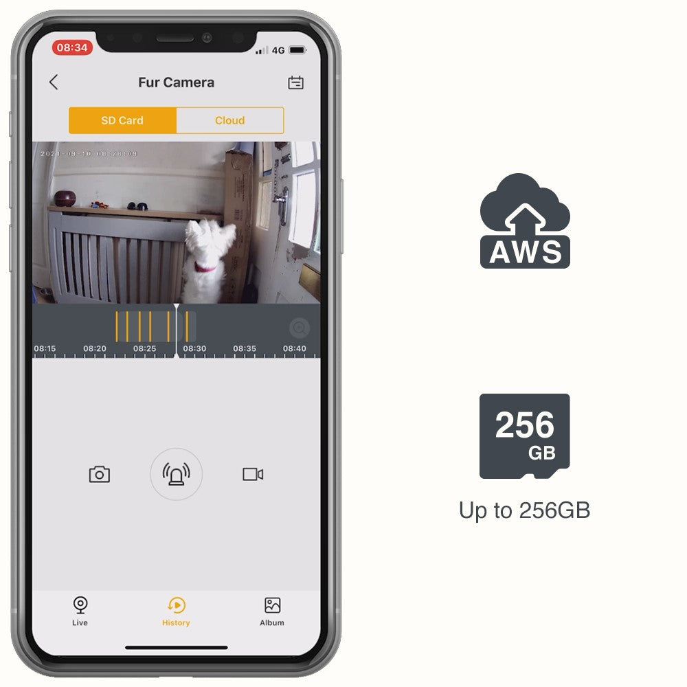 إمكانية التخزين السحابي لحفظ اللقطات ومراجعتها من أي مكان مع امكانية إضافة ذاكرة تخزين