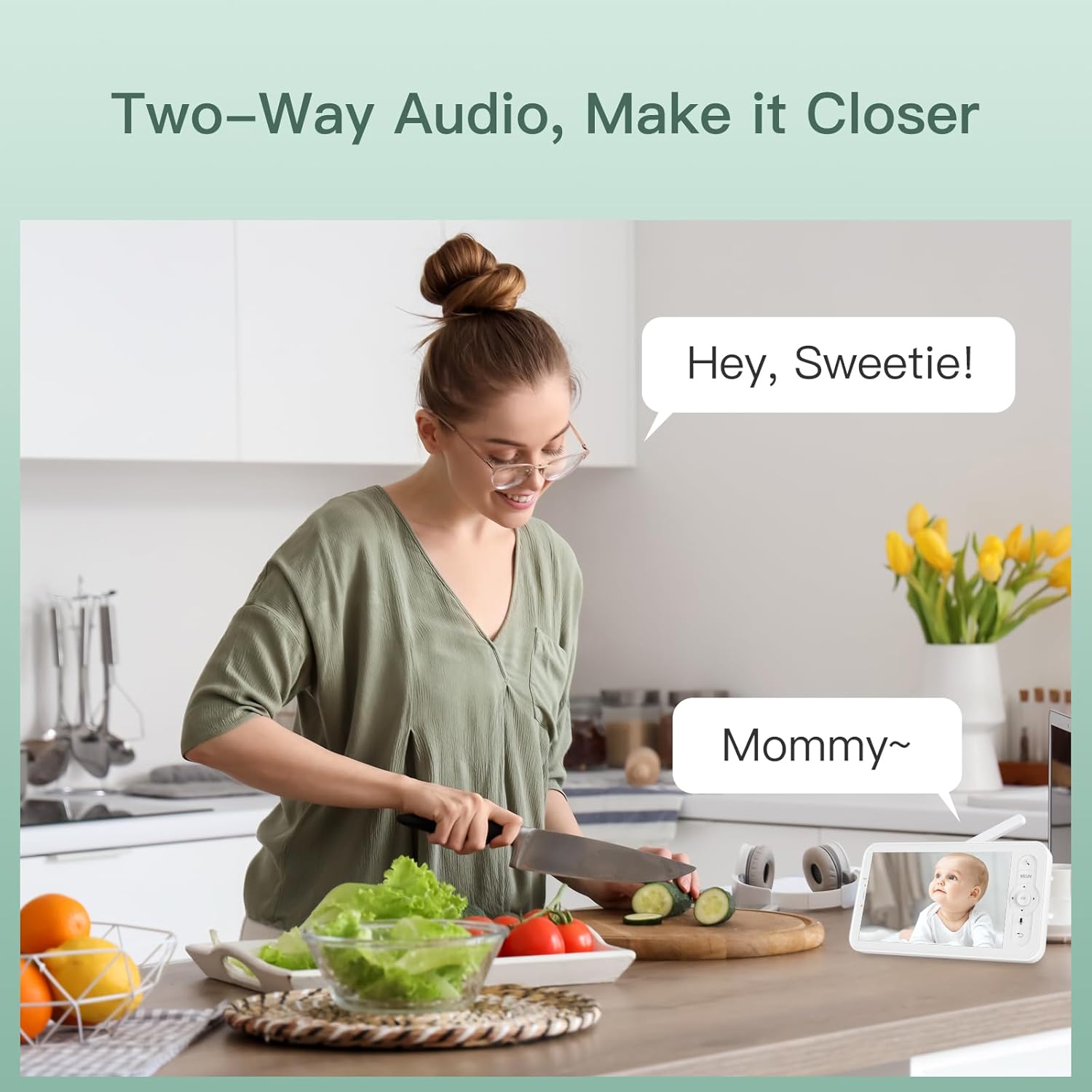 - تحكم عن بعد في جهاز مراقبة الطفل من خلال تطبيق الهاتف الذكي عند الخروج. تضمن تقنية التنقل والتشفير الرقمي الخاصة بنا الأمان والموثوقية. لاحظ أن كاميرا الأطفال يجب أن تتصل بنفس واي فاي 2.4 جيجا (وليس 5G) مثل تطبيق الهاتف أثناء الإعداد الأولي.